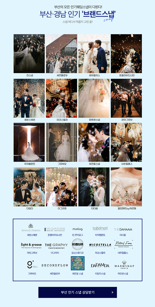 본 프로모션 페이지는 "더퍼스트웨딩"의 프로모션 대행사인 '소나미디어'의 'CPAAD'서비스를 통해서 시행되고 있습니다. 관계법령에 의거 본 프로모션에 참여하신 고객님의 개인정보는 상품안내(텔레마케팅, 이메일 등)의 마케팅에 활용됩니다.