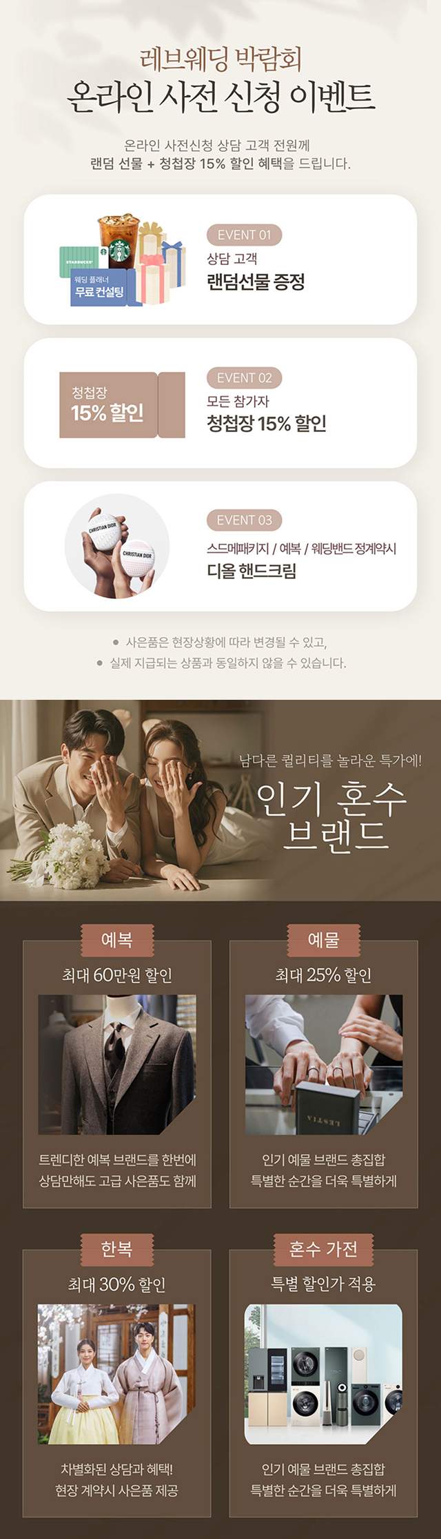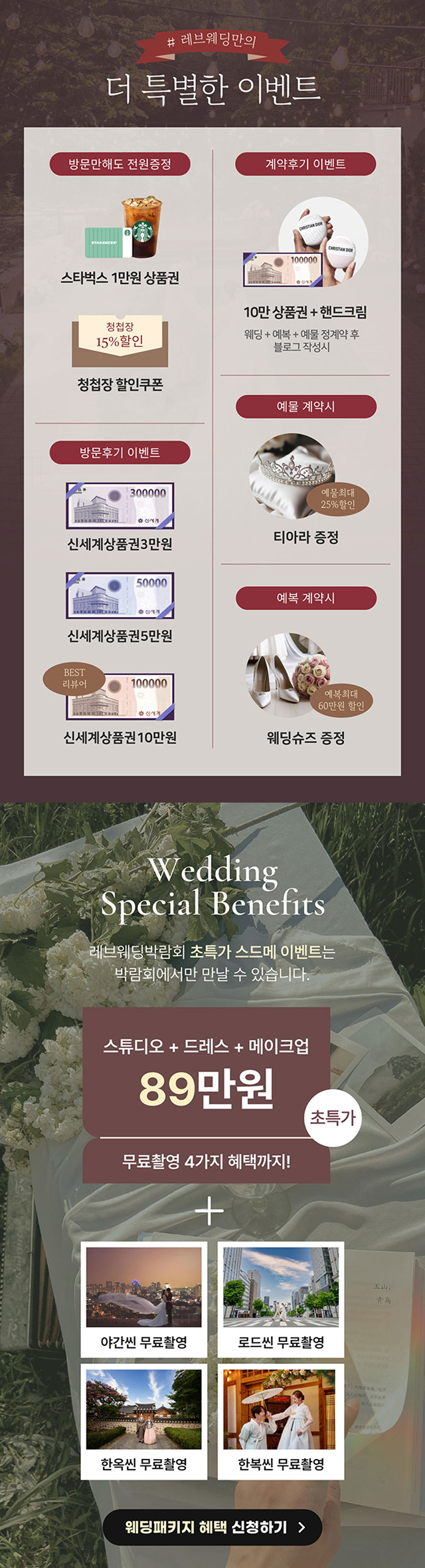 본 프로모션 페이지는 "더퍼스트웨딩"의 프로모션 대행사인 '소나미디어'의 'CPAAD'서비스를 통해서 시행되고 있습니다. 관계법령에 의거 본 프로모션에 참여하신 고객님의 개인정보는 상품안내(텔레마케팅, 이메일 등)의 마케팅에 활용됩니다.