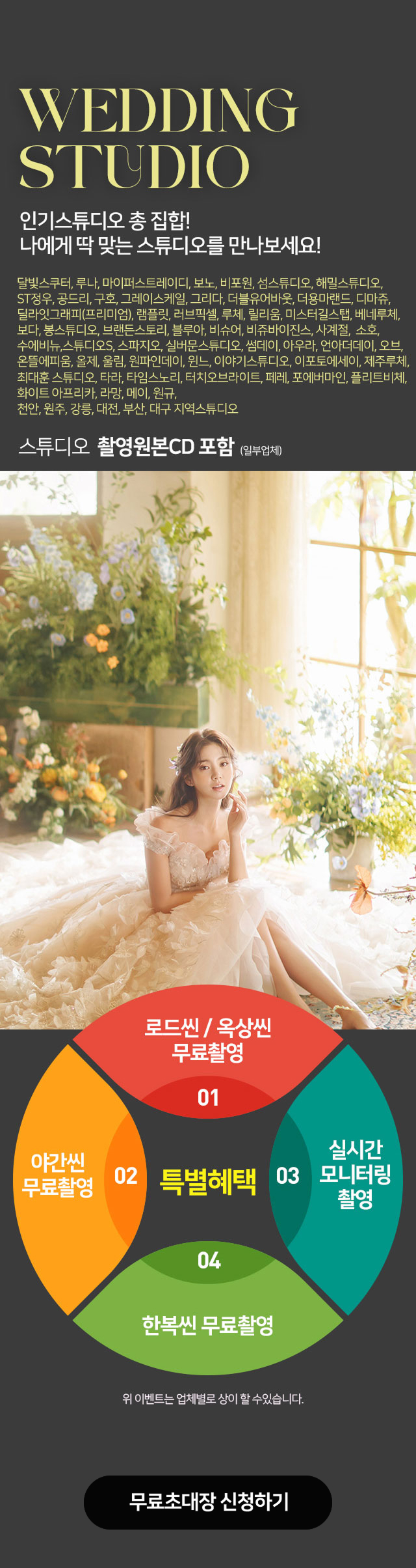 본 프로모션 페이지는 "더퍼스트웨딩"의 프로모션 대행사인 '소나미디어'의 'CPAAD'서비스를 통해서 시행되고 있습니다. 관계법령에 의거 본 프로모션에 참여하신 고객님의 개인정보는 상품안내(텔레마케팅, 이메일 등)의 마케팅에 활용됩니다.